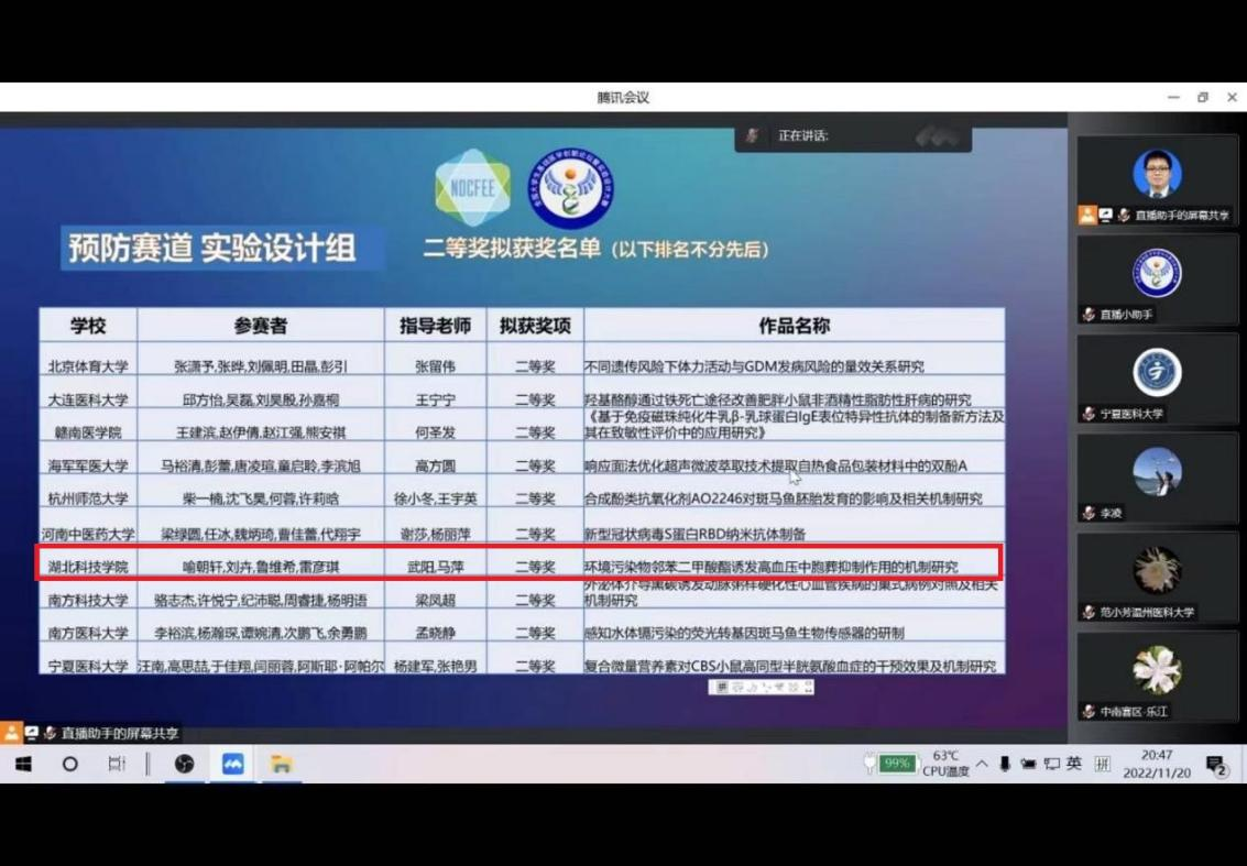 11月18-20日,第八届全国老员工基础医学创新研究暨实验设计论坛中南区复赛在武汉大学举行。本次大赛由高等公司国家级实验教学示范中心联席会基础医学组、高等公司基础医学创新创业协同育人工作组主办,武汉大学承办。采用线上答辩、评审和监督多视频的模式式进行,来自中南赛区7省50余所本科院校的257个赛道项目参赛。BETWAY必威7支参赛队伍,按照双盲模式完成了汇报和答辩,获得二等奖1名,三等奖4名,优胜奖2名。由武阳博士和马萍教师指导,2020级临床医学实验班员工喻朝轩、刘卉、鲁维希、雷彦琪组成的参赛队伍,获得的预防医学实验设计论坛二等奖,晋级全国总决赛。