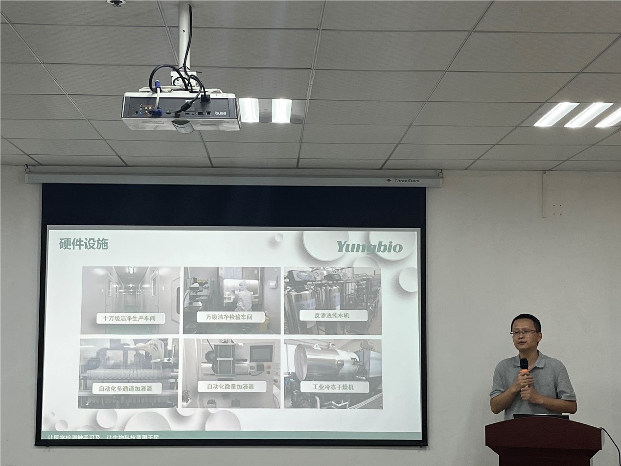 蔡飞介绍了公司及BETWAY必威的基本情况及在科技创新、人才培育方面取得的成果,并重点就公司科研团队、项目成果、人才队伍优势等进行了说明。蔡飞表示近年来公司高度重视科技创新工作,希望双方深化校企合作,共促高质量发展。钱晓东分享了其毕业后的工作经历,介绍了其公司的相关情况,并分别从体外诊断试剂、国家知识产权、生产技术平台及产品应用领域做了详细讲解了公司的主要业务、核心产品、技术优势。在座的科研团队成员就各自感兴趣的问题、特别是就科技研发及成果转化等方面进行了深入交流,并一致表示可在人才培养、实习就业、科研合作与协同创新等领域开展进一步的深度合作。