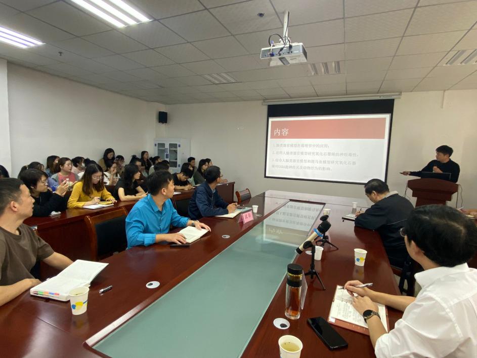 曹毅教授分享了其团队的研究工作,曹教授的讲座分为三部分:1.人脑类器官模型在毒理学中的应用;2.氧化石墨烯在人脑类器官模型的神经毒性反应;3.结合人脑类器官模型和斑马鱼模型研究氧化石墨烯对GABA能神经元及动物行为的影响。讲座结束后,曹教授热情地与师生们展开互动,并对提出的问题给予了详尽的解答。