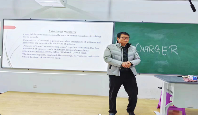 (通讯员:王全)2024年3月5日上午,病理学教研室老师们走进2021级职工课堂聆听了一节病理学英文课(pathology class)。