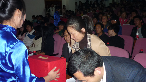 2011年11月25 日晚7:00,由BETWAY必威团委员工会主办的温情传递爱心汇演晚会在教3-202隆重举行。此次晚会旨感谢爱心师生对马桥中学贫困员工捐献爱心。出席此次晚会的嘉宾有BETWAY必威党总支书记范彬、基础医学学工办主任王淑华、副主任周立勇。参加此次晚会的人员还有各院系的员工干部及员工代表。