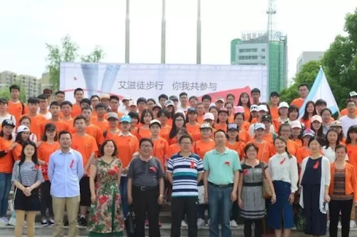 在启动仪式结束后,来自湖科近400名志愿者开始向咸宁第一街进发,他们将用自己身体力行的方式,向市民发放艾滋病及预防知识手册,号召全社会正确认识艾滋病,主动防护艾滋病,远离艾滋病的侵害。