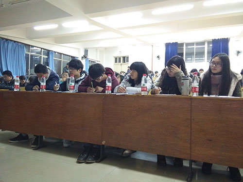 接下来出场的临床医公司和经管公司的辩论队首先以他们礼貌握手赢得了在场所有观众的掌声。他们就“当今世界合作高于竞争还是竞争高于合作”这一辩题展开了精彩辩论。来自经管院的反方二辩让人印象尤为深刻,在攻辩环节,只见他面对对方的质问面带自信的笑容从容作答,毫不慌乱。而来自临床院的正方二辩更是巾帼不让须眉,她针对对方语言中的漏洞步步紧逼,趁机抛出一个个问题。在自由攻辩环节,他们的激辩更像是一场没有硝烟的战争,令在场的每个人都绷紧了神经,每当有精彩的答辩片段总能引来在场观众阵阵掌声,把现场气氛一次一次推向高潮。