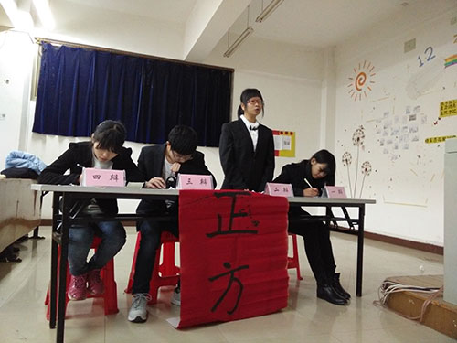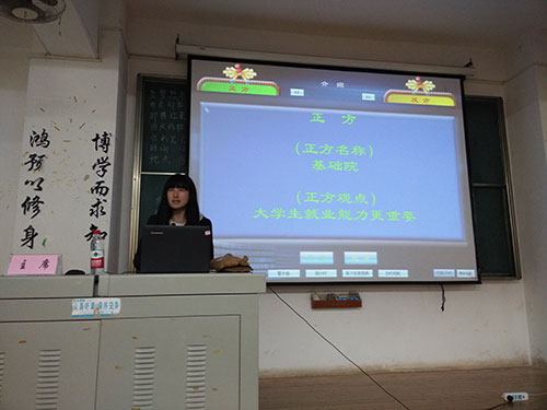 放飞思想,展现本我。 2014年12月10日晚7点,由校创新创业部主办,BETWAY必威承办的第一届创新拓展辩论赛复赛在教学楼5-201成功举行。BETWAY必威团委员工会创新创业部部长汪志,绿舟环保协会的副会长杜晓慧等人出任了本次比赛的评委。