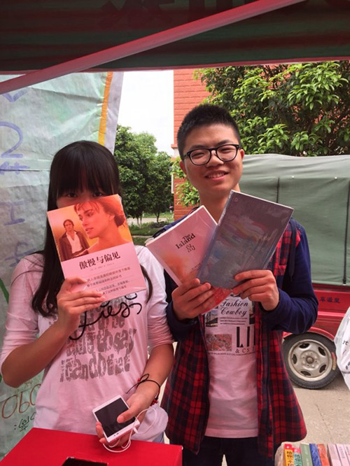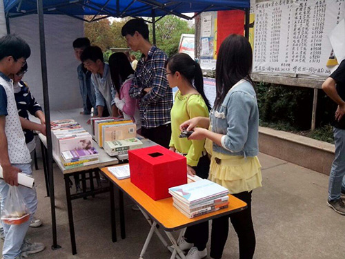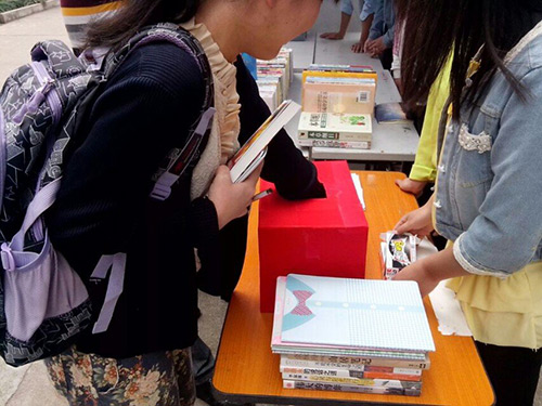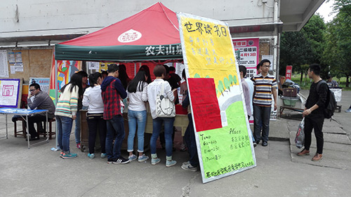 4月23日中午,读书日活动在东、西区宣传栏进行得热火朝天,同学们购书的热情高涨。活动中,购书抽奖,你买我送,旧书分享等环节大大地提高了同学们购书的积极性,很多同学都前来购书,其中也有好多热心的同学将自己的爱书拿出来和大家一起分享。宣传干事们也各有分工,在一阵阵宣传口号中活动井井有条地进行着。同时,为了鼓励同学们多读书,公司还进行了读书奖励这一环节,给公司图书馆借阅量前三名的同学颁发了奖品。