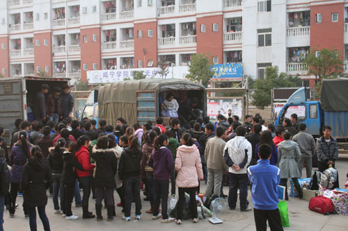 2011年2月23日上午8点,BETWAY必威08级临床专业100多名员工将赴孝感见习点。BETWAY必威、临床医公司和教务处的相关老师,以及很多的同学为他们送行。