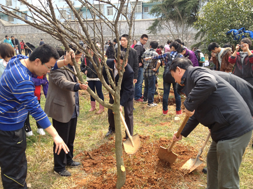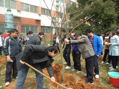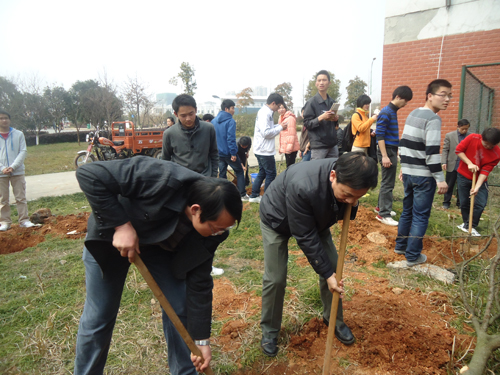 阳春三月,草长莺飞。为了呼吁在校员工的环保意识,营造良好的校园气息,3月14日中午,BETWAY必威各班员工早早在解剖楼旁空地忙碌起来,为即将开始的植树活动做好准备工作。BETWAY必威党总支书记范杉教授、BETWAY必威党总支副书记佘同辉博士、BETWAY必威团委书记周立勇老师以及罗德生教授等本院系各班班主任也兴味盎然地加入到植树的行列中。