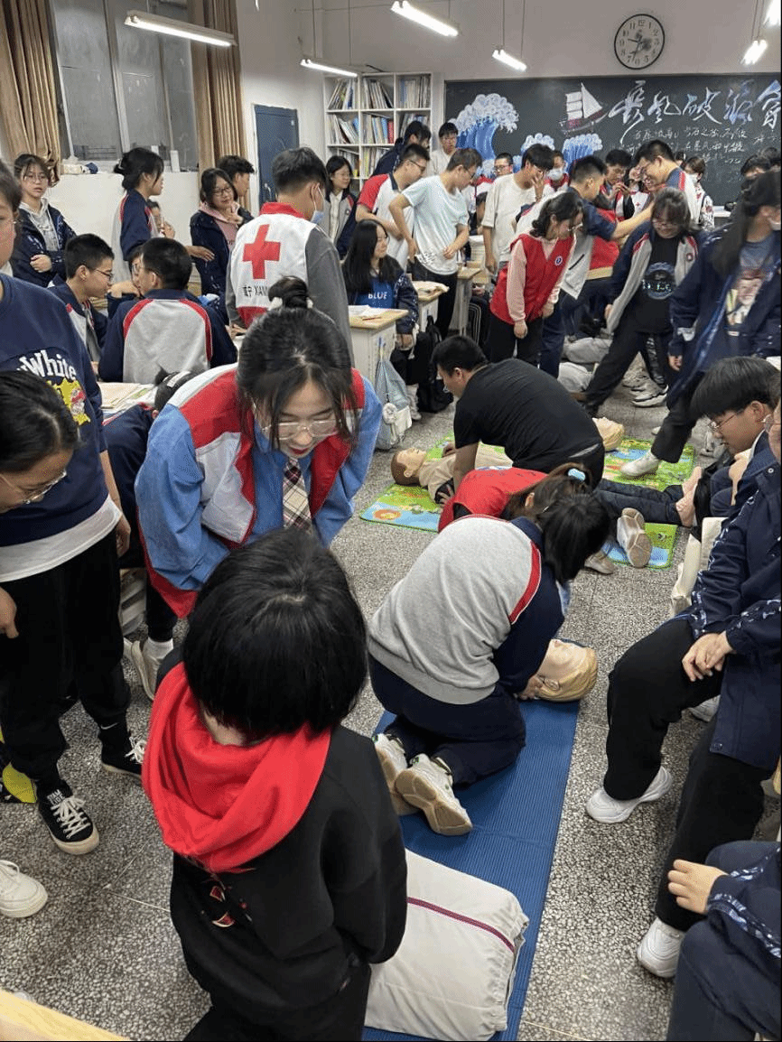 活动接近尾声,我们对同学们进行了采访,他们说:“假如某一天遇到突发伤害事件时,希望我可以为他人做出一点绵薄的贡献;“因为家族成员中有心脏病史,如果能掌握心肺复苏技能,能让家人少一些担忧,多一些安慰。”在活动总结中,韩璐老师谈到:“大多数同学在胸外按压的过程中显得吃力,可见,要到达标准的心肺复苏操作,同学们仍需努力。今后希望同学们强健体魄,关爱生命,理解心肺复苏的意义,掌握急救知识的技能。”