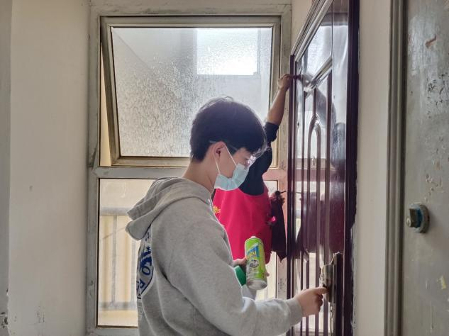 到达香城社区后,志愿者分为九个小组,有序领取喷漆、铲刀、抹布、除胶剂等清洁工具,进入各自负责的楼层,积极地对每家每户的小广告进行全面铲除,大家团结协作,有条不紊的开展各项工作。