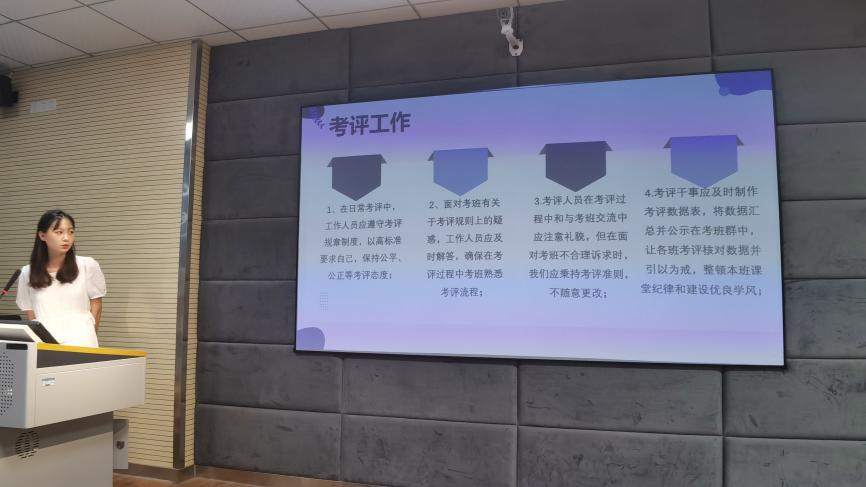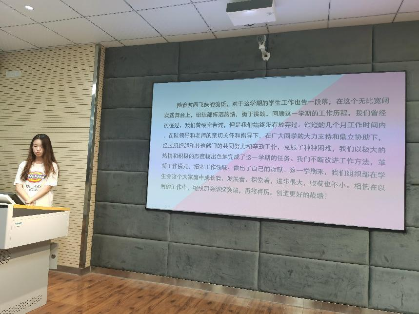 会议上,各部门负责人依次上台进行述职报告演讲,对其部门一学年的工作情况进行总结汇报。述职中,各部门负责人简明的概述了工作中的收获与不足,并提出了今后的整改措施和工作计划的方向以及对各自部门活动提出了一些创新性的建议,希望在今后的工作中各部门能够相互帮助,取长补短,共同进步将BETWAY必威团委员工会打造成一个更好的集体。同时,各部门负责人也简述了自己部门中成员的经历变化,从略知到可见的进步成长。
