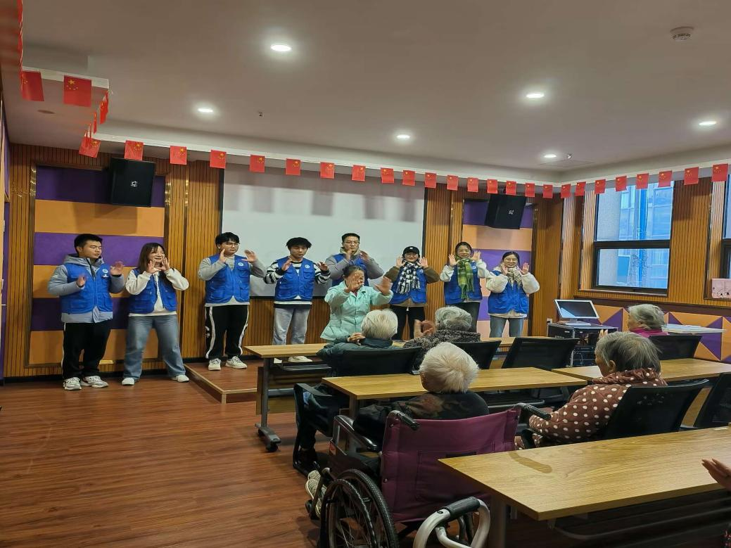 志愿者们首先向老人们科普有关支原体肺炎防护的相关知识,带领老人们共同学习健康手势操,带动现场的氛围,大家很快融入了这个温馨的群体。随后,志愿者们为老师们献上了几首歌并带着老人们一起唱歌,现场节奏声和歌声交织着,歌声慷慨激昂,老人们的脸上都洋溢着幸福的笑容。志愿者们还为老人们准备了趣味游戏,老人们在参与游戏的过程中收获了快乐与满足,现场洋溢着温馨与和谐,老人们向志愿者们敞开心扉,跟志愿者们分享着他们的快乐。
