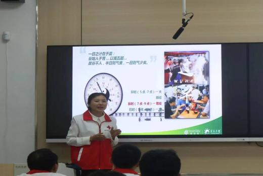 服务队副队长朱敏为参会人员讲解营养早餐,帮助志愿者们在“三献”志愿服务中保持高度集中的注意力;服务队领队黄才群和刘犇就团队的合作与建设方面分享自己的感悟,号召志愿者们加入“三献”志愿服务队,奉献自己的一份爱心。