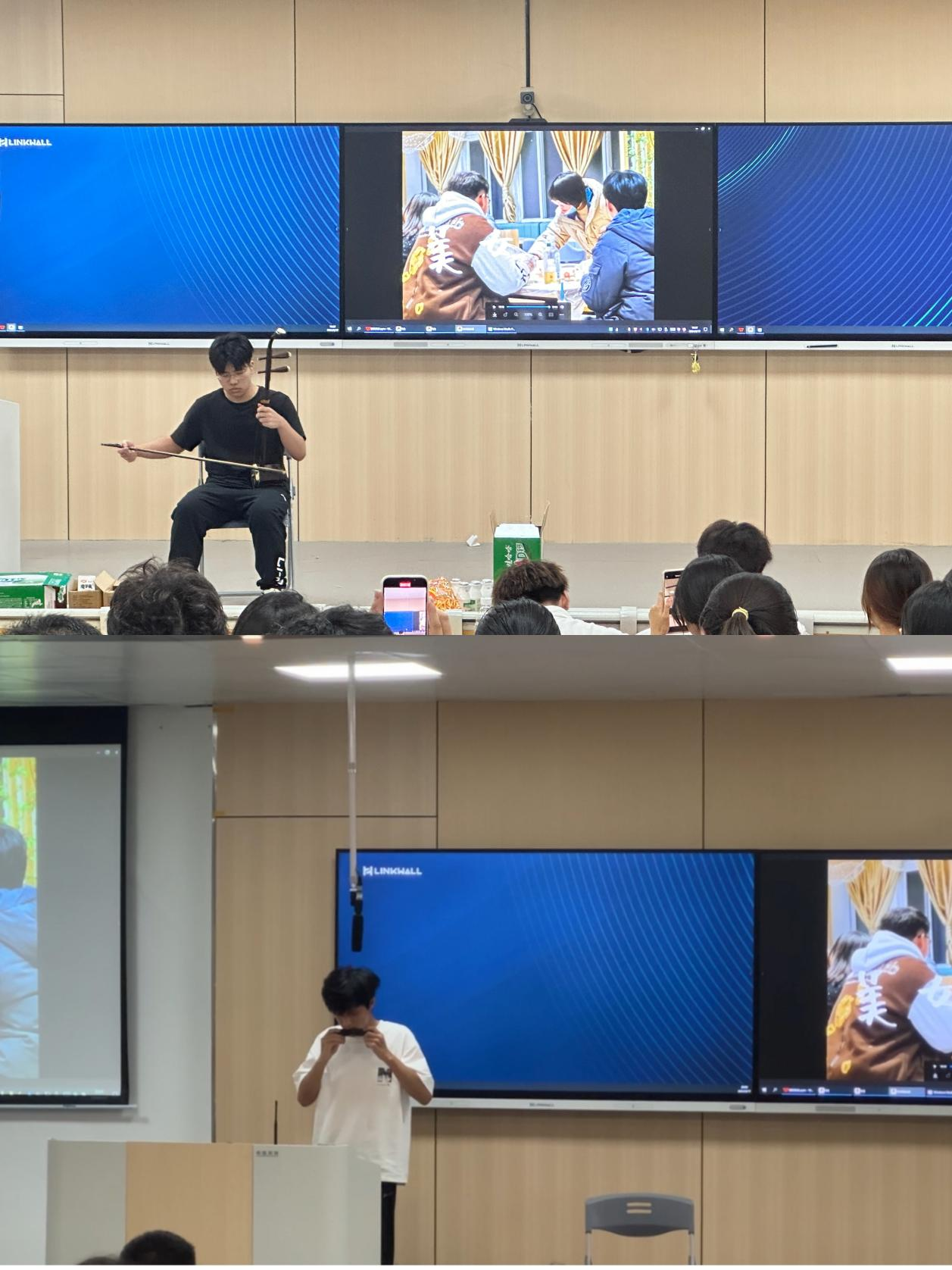 随后同学们进行了精彩的表演,悠扬婉转的歌声、抑扬顿挫的二胡声以及娓娓动听的口琴声编织出一曲曲动人心弦的中秋赞歌,向辛勤耕耘的老师们及同窗好友致以最诚挚的节日祝福。