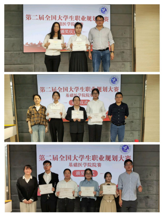评委老师们认真聆听了每一位选手的展示,并根据选手的主题陈述、职业规划的合理性以及现场表现进行了专业的评分。在提问环节,评委们与选手们展开了深入的交流,针对选手们职业规划中的不足提出了宝贵的建议,帮助选手们进一步完善自己的职业规划。经过评委评定,聂欣雯、林子怡和洪思博同学分别荣获就业赛道一等奖、二等奖和三等奖,程心怡同学荣获成长赛道一等奖,李杨慧和李爽同学荣获成长赛道二等奖,谭樾悦、陈天琪和黄才群同学荣获成长赛道三等奖。