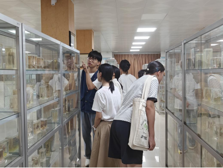 在标本参观环节,大家依次走进胚胎学展区、解剖学展区和病理学展区。胚胎学展区中,生命最初的形态静静展示,仿佛在诉说着生命诞生的神奇故事,让参观者们深刻感受到生命起始的微妙与珍贵。解剖学展区内,精密复杂的人体结构标本,使大家对自身的构造有了更为直观的认识,每一块骨骼、每一个器官,都承载着生命运行的奥秘。病理学展区则像是一面“健康镜子”,通过病变器官的标本,警示着人们健康的重要性,也揭示了疾病对人体产生的影响。参观者认真聆听讲解,不时提出问题,眼神中满是对知识的渴望。