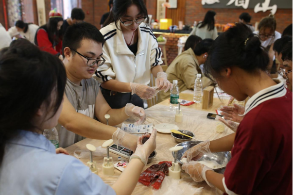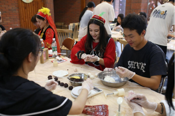 9月27日下午,各族师生共同参与了“指尖上的民族情”非遗剪纸体验活动,大家在指导老师的讲解下,精心刻画,一幅幅蕴含五十六个民族独特文化符号的精美剪纸作品渐次绽放,生动的图案将“中华民族多元一体”的宏大叙事,具象化为可触可感的艺术载体,深深印刻在每个人心中。中秋佳节将至,活动的另一重头戏——手工月饼制作也如火如荼地展开。大家分工协作,和面、包馅、压模、烘烤,忙得不亦乐乎。空气中弥漫着月饼的香甜,也充满了欢声笑语,当一个个印有祝福字样、饱含深情的手工月饼新鲜出炉时,各族师生共同品尝着这份劳动的甜蜜,分享着各自家乡的中秋习俗,深切感受着中华传统文化中关于团圆、共享的深厚内涵。