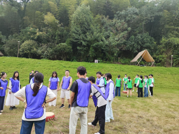 9月27日上午,一场充满趣味与挑战的素质拓展迅速拉近了各族师生的距离,在“敲同心鼓”环节,每组队员需通过默契配合让皮球在鼓面上连续弹起,从最初的手忙脚乱到后来的步调一致,每一次成功的传递都引来全队的欢呼,默契在一次次尝试中悄然凝聚。“指压板平衡”环节,队员们需要在凹凸不平的指压板上托举圆球走完赛道,加油声、鼓励声此起彼伏,大家在欢声笑语中齐心协力完成任务,深刻体会到“团结就是力量”的真谛。