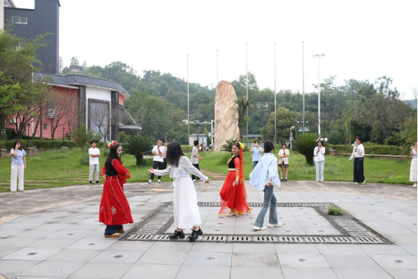 两位维吾尔族姑娘优美的舞姿将气氛推向高潮,她们随着欢快的节奏翩然起舞,眼眸中流转着热情与自信的光彩,在她们热情的邀约下,原本观赏的各族师生纷纷起身,无论熟悉与否,都勇敢地汇入这欢乐的节拍,这心灵的共鸣与情感的共融,生动诠释了“各美其美,美美与共”的深刻内涵,将民族团结的深情厚谊永远定格在各族师生心中。