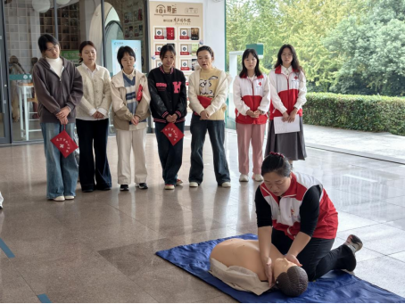 理论授课环节,“小满科普团”队长汪娟老师以真实急救事件为切入点,将心肺复苏(CPR)、海姆立克急救法等专业知识转化为场景化操作指南。在讲解关键要点时,她借助模拟人教具进行现场演示,并配合赵淑娟老师的同步动作拆解,使抽象的急救规范变得直观明了。上午课程结束后,全体学员参加了理论考核。