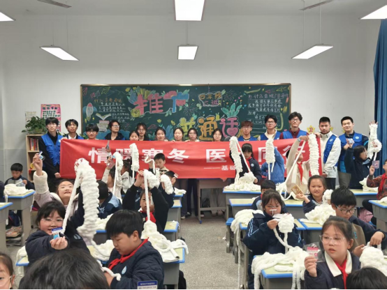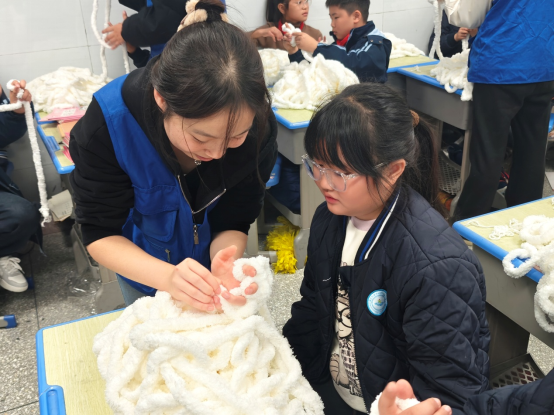 趣味互动环节将活动氛围推向高潮。词语接龙游戏里,孩子们围绕“健康”“护眼”等主题争相抢答,在欢乐中加深知识记忆;手指围巾制作现场,志愿者耐心指导,一条条迷你围巾在小手中诞生,孩子们互相展示作品,在协作中收获快乐与温暖。这种“知识+趣味”的模式,让孩子们在轻松氛围中主动学习,参与热情格外高涨。