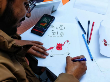 核心环节里,多元展区成为全场焦点,协会精心筹备的五类艺术化可视化作品有序陈列。器官捐献主题海报聚焦人文关怀,以温暖画面与精练文字传递生命大爱;疾病与器官艺术化可视化作品、医员工原创红蓝铅笔组织切片图、医学常识可视化作品及创意医学插画同步展出,全方位展现医学与艺术交融的创作成果。各展区讲解员深入解读作品的创作思路与内涵,中外员工驻足探讨,在专业分享与文化碰撞中深化认知。随后,全体参与者对照展区艺术作品近距离观摩人体器官实物标本,在理论可视化与实物观察的结合中,切实提升医学实践能力,夯实专业认知基础;活动尾声的“马年绘画接龙”创意互动,让中外学子在协作创作、分享理念、书写祝福的过程中,为活动定格温馨瞬间。