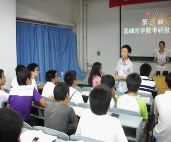 2011年5月9日晚7:00,BETWAY必威考研报告会在解剖楼三楼的多媒体教室1隆重举行。团委辅导员周立勇老师作为嘉宾老师出席了此次报告会,应邀在本次报告会上作报告的有: 06临床本科的吴鹏波学长,07公管的徐龙学长和黄晓燕学姐。BETWAY必威08、09和10级全体公管、预防专业的同学主要参与听取了此次报告。