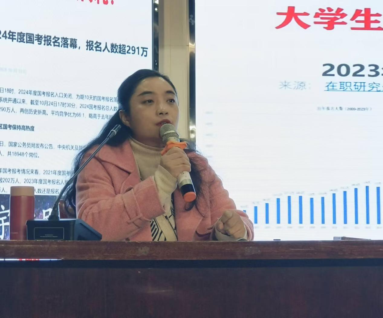 华晶晶老师围绕大赛缘起、大赛解析、成长赛道解析、就业赛道解析、选手选育等五个方面开展主题分享,她指出,职业规划有助于同学们提前建立学业、职业、事业之间的联系,激发专业学习和综合能力提升的内生动力,助力实现高质量就业。华老师对同学们参加大赛的技巧进行指导,建议大家以“文字精炼+图表逻辑”的方式简明呈现,做到自身成长叙事过程的可视化与实证结合,并分别从成长赛道和就业赛道两个方面为同学们进行详细讲解。成长赛道注重个人发展和成长,如何清晰评估自身、如何设定合理职业目标将成为员工参赛的重要因素,就业赛道则侧重于突出自身与岗位的匹配度。华老师希望各位同学借此大赛,真正实现以赛促学,赛有所成,学有所成。