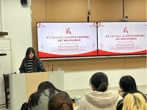 在班会伊始,学习委员逐一细致地向同学们解读了《2019版临床医学本科专业课程计划表》、《关于2023-2024学年学分清理的通知》以及《BETWAY西汉姆联授予学士学位实施细则(修正版)》等关键文件,有助于同学们清晰地掌握未来应修的课程科目情况,特别是对学分清理的处理标准和不授予学士学位的情况有了明确的认识。