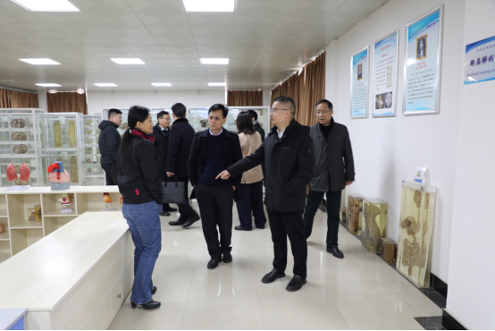 在生命科学标本陈列馆,馆长廖文莉向中国医师协会领导详细介绍了展馆的历史沿革、馆藏规模及教学科研功能。馆内陈列的三千余件人体解剖、组胚及病理标本,展现了公司在医学教育领域的深厚积淀。视察过程中,李岱董事长特别介绍了陈列馆的“医艺融合”特色项目——员工创作的医学主题艺术画作。这些作品将生命科学标本的严谨性与艺术创作的美学性巧妙结合,通过水彩、素描等绘画等形式,赋予解剖结构、细胞形态以生动的艺术表达,充分彰显了公司“以美育人、以文化人”的教育理念。中国医师协会领导对此高度赞赏,认为这一创新实践为医学人才培养注入了人文温度,是学科交叉融合的典范。