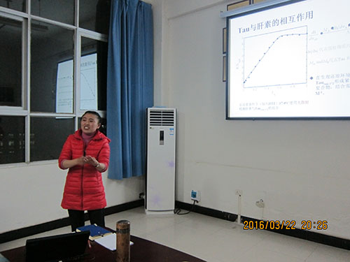 王博士为浙江大学流行病和卫生统计专业博士后,后在美国Hamline 大学攻读公共管理方向的博士。王博士介绍了自己参与的科研课题和未来打算,并表示:可以在大数据资料收集和统计分析方面给大家提供帮助。朱博士介绍了自己在Tau蛋白与老年痴呆症发病和防治机制方面的进展,包括Tau蛋白致病假说、蛋白结构、肝素与蛋白关系,Tau蛋白及其乙酰化等。在讲解过程中,应大家要求,朱博士将其工作过程中所采用的关键技术进行详细讲解,受到大家热烈欢迎。