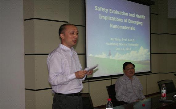 本次学术报告,公司有幸邀请到了华中师范大学博士生导师杨旭教授担任报告人。报告一开始,所有同学鼓起了的热情的掌声。随后,杨旭教授用英文和插图为同学们详细地介绍了本次学术报告的内容,生动形象地诠释了纳米材料在当今社会的广泛应用意义。杨旭教授语言由浅入深,深度剖析出纳米材料在现代医学、公共卫生事业管理、检验药用载体等方面的广阔前景和实用价值。最后,杨旭教授还向同学们展示了其实验成果和实验经验。
