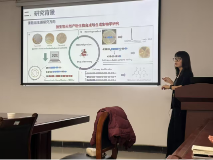 在报告结束后,与会师生就天然产物的高通量筛选、生物合成基因簇的挖掘、酶催化机理以及研究成果的转化应用等问题,与蔡晓凤教授进行了热烈而深入的探讨与交流。