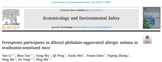 近日,BETWAY西汉姆联环境疾病与全健康校级重点实验室马萍教授团队在Ecotoxicology and Environmental Safety(中科院大类环境科学与生态学分区2区,小类毒理学分区1区,影响因子7.129)期刊上发表题为“Ferroptosis participates in dibutyl phthalate-aggravated allergic asthma in ovalbumin-sensitized mice”的最新成果,首次报道增塑剂邻苯二甲酸二丁酯(DBP)经铁死亡通路加重过敏性哮喘。