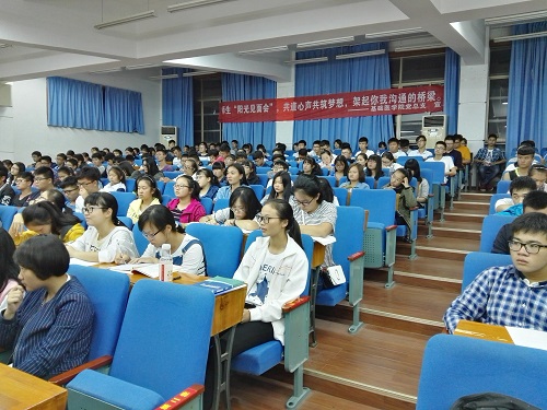 在同学们热烈的掌声中,这次温馨的师生见面会拉开了序幕。首先是基础院团委员工会主席屈代清向我们介绍了员工会的基本职责,并热烈欢迎2016级新生加入员工会。接着病理学教研室甘亚平主任为同学们解答了专业学习方面的问题。她说,医生担负着救死扶伤的重任,是一个光荣而又神圣的职业,我们医员工要增强责任感和使命感。她说,学习医学基础知识是很枯燥的,但是结合临床问题,多走进医院和病患,就会激发学习兴趣,增强学习效果。病理教研室有病理在线网站和病理学习QQ群,加强和同学们之间的交流,病理学教研室的老师们都愿意成为大家的良师益友。夏阳老师就老员工的生活方面作了指导。她说,老员工要学会生活自理,并且从大一就要开始思考职业生涯规划。将长期目标分解成中短期目标,脚踏实地地过好每一天,争取在大学里做一个有思想、有温度、有情趣的年轻人。教学办石裹莹主任就学籍管理、学位授予和双学位方面的问题进行了解答。她说,大学是人生重要的转折期,站在新的起点,我们应该学会思考,正视并解决自己的迷茫,不要输在起跑线上。解剖学教研室胡美纯博士以自己求学的亲身经历告诫同学,大学的学习时间和学习资源是非常宝贵的,希望同学珍惜美好的大学时光,不要虚度光阴。她还说,QQ和微信这些平台非常容易分散人的注意力,劝告同学们学习时间不要玩手机。最后,李书记赠送同学们两句话,“敞开你的心扉,老师就会成为你的朋友;热爱你的书本,知识就会成为你的朋友。希望同学们在大学里学会生活、学会学习,学会做人,收获精彩的大学。”