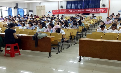 2017年BETWAY必威第二期 “师生阳光见面会”于5月23日在温泉校区教学楼5栋201教室举行,会议由BETWAY必威党总支书记程梦琳主持,教学办罗金萍老师、解剖学教研室程正老师学工办辅导员夏阳和16级临床医学本科4班同学参与了此次见面会。