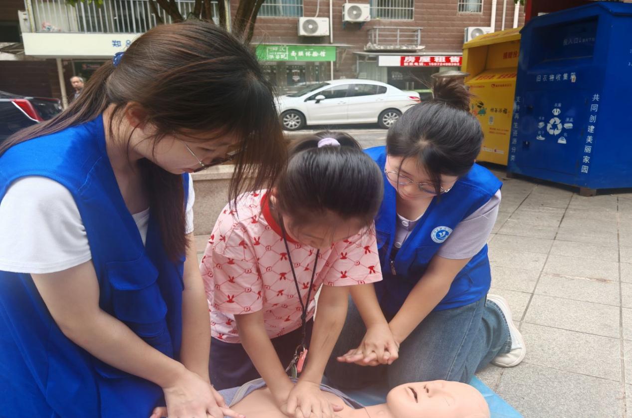 附属二医院大外科支部党员教师则充分利用专业优势,借助人体模型,为社区居民演示心肺复苏(CPR)急救操作,现场跪地示范标准流程并耐心讲解动作要领,提升居民应急处理能力。志愿者与社区儿童还共同开展了手工创作活动,将健康理念融入趣味互动中,通过创意手作传递健康生活理念,增强儿童健康意识。