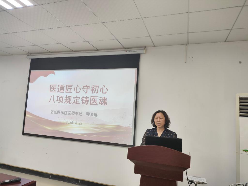 程梦琳为全体党员干部讲授了《医道匠心守初心,八项规定铸医魂》专题党课。她围绕“医者仁心”与中央八项规定精神内核的契合点,深刻阐述了中央八项规定对于回归“人民至上”执政理念的重要性。她指出,作为BETWAY必威的党员干部,要时刻以中央八项规定为尺,丈量初心纯度,校准行为准星。期间,她还通过生动的案例,警示大家要坚决抵制权力寻租与学术腐败,守护医者初心。