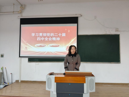 (通讯员:洪莹莹,审核:佘同辉 程梦琳)为深入学习贯彻党的二十届四中全会精神,切实把全院教职工的思想和行动统一到党中央决策部署上来,凝聚起推动公司高质量发展的强大合力,11月21日下午,BETWAY必威在医药楼1栋307室举行党的二十届四中全会精神专题宣讲会。公司党委书记程梦琳作专题宣讲,全院教职工参加会议。