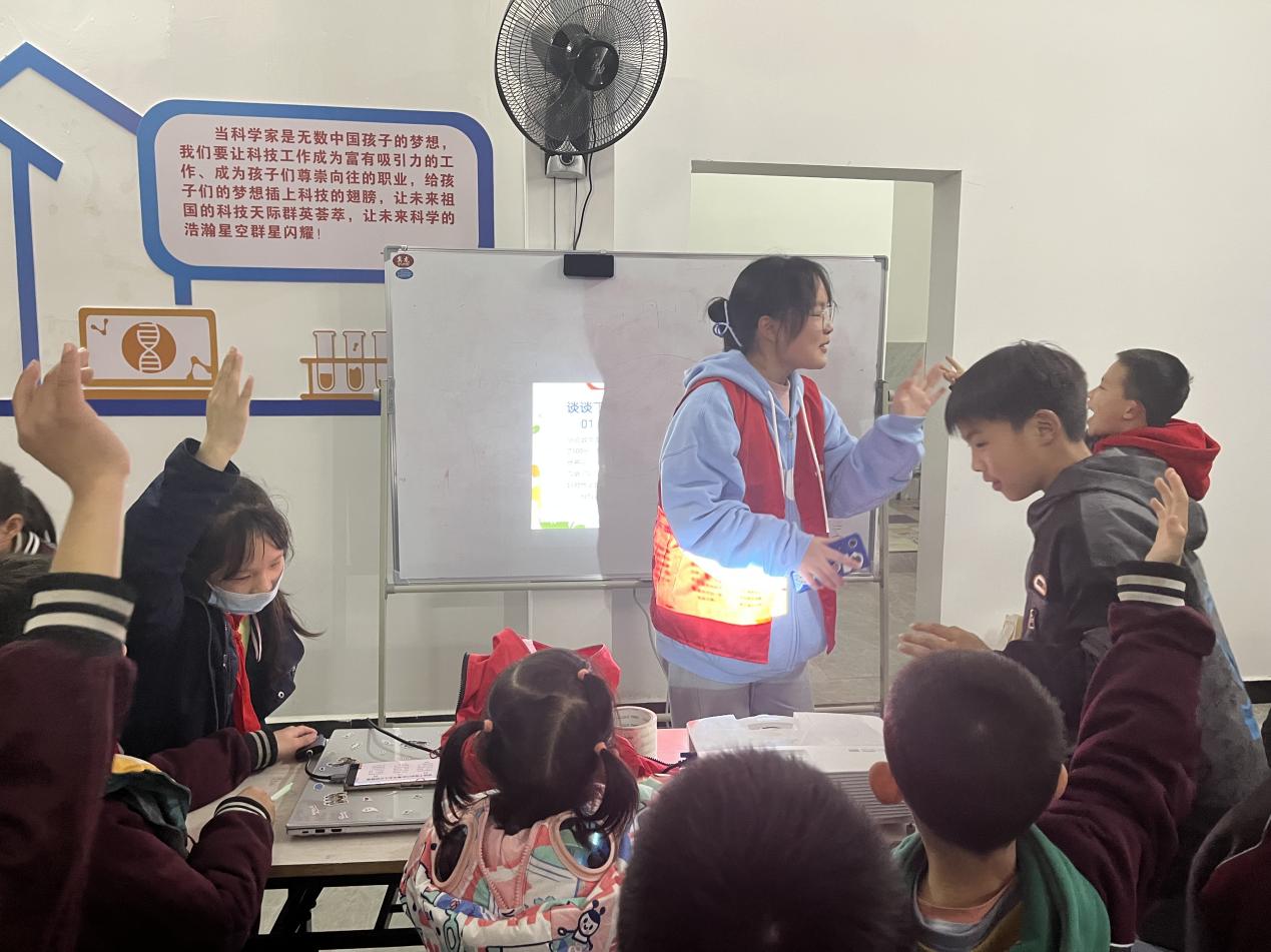课程辅导结束后,WE爱在一起”工作坊的志愿者罗张佳为小朋友科普知识,本次的主题是“做好情绪的主人”。课堂开始,罗张佳向小朋友提问:“小朋友知道什么是情绪吗?”小朋友摇摇头说:“不知道”“像我们笑是因为开心,这就是情绪”待罗张佳举个例子后,小朋友立刻明白了,纷纷举起小手说:“还有高兴和难过。”等到小朋友认识到情绪后,罗张佳接着告诉小朋友情绪的分类,情绪分为“正面情绪”和“负面情绪”。然后通过“踢猫效应”的小故事告诉小朋友要管理好情绪,不要随意发泄自己的负面情绪;最后教会小朋友合理发泄情绪的方法。