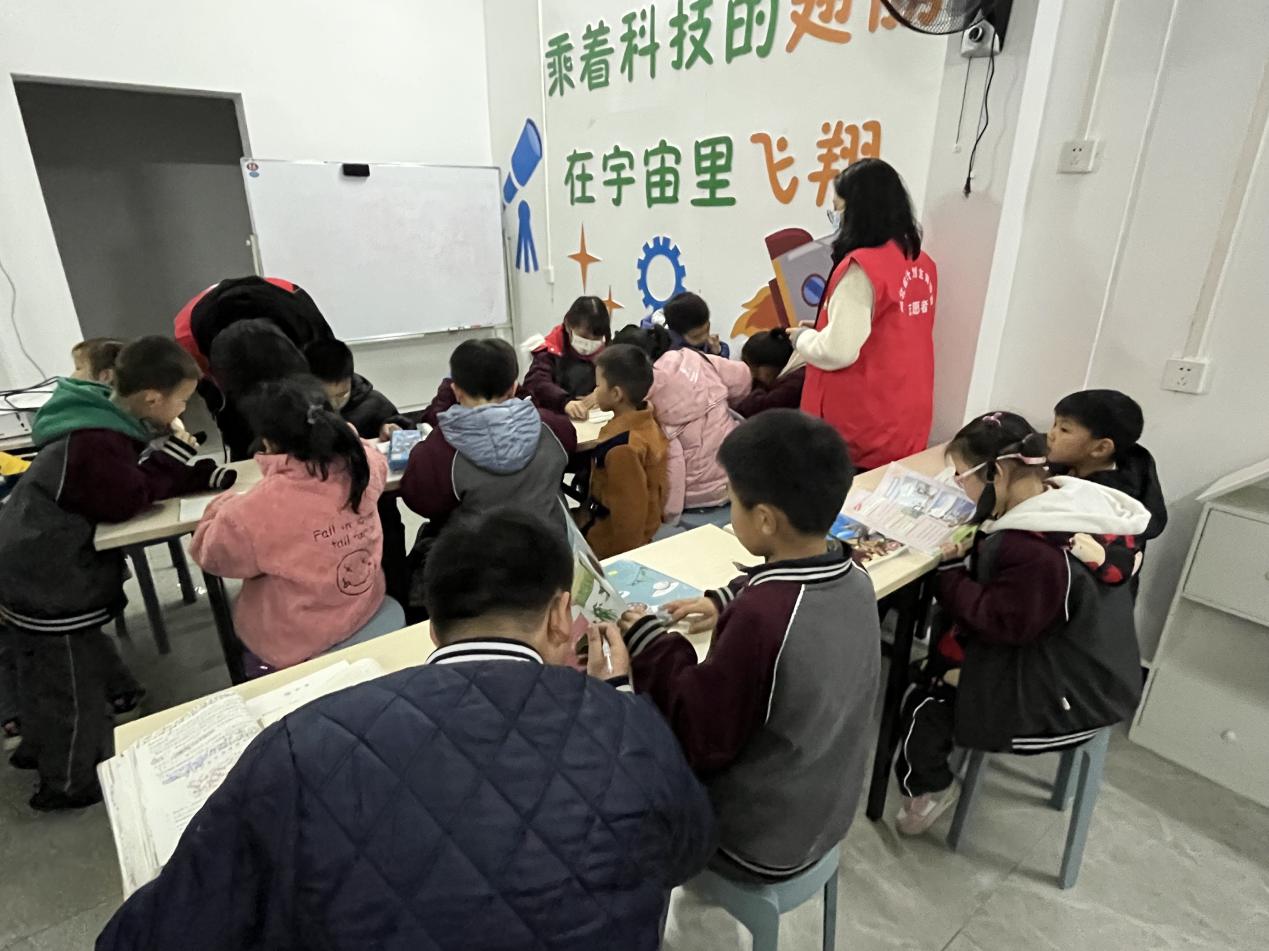 (志愿者们给小朋友辅导功课)