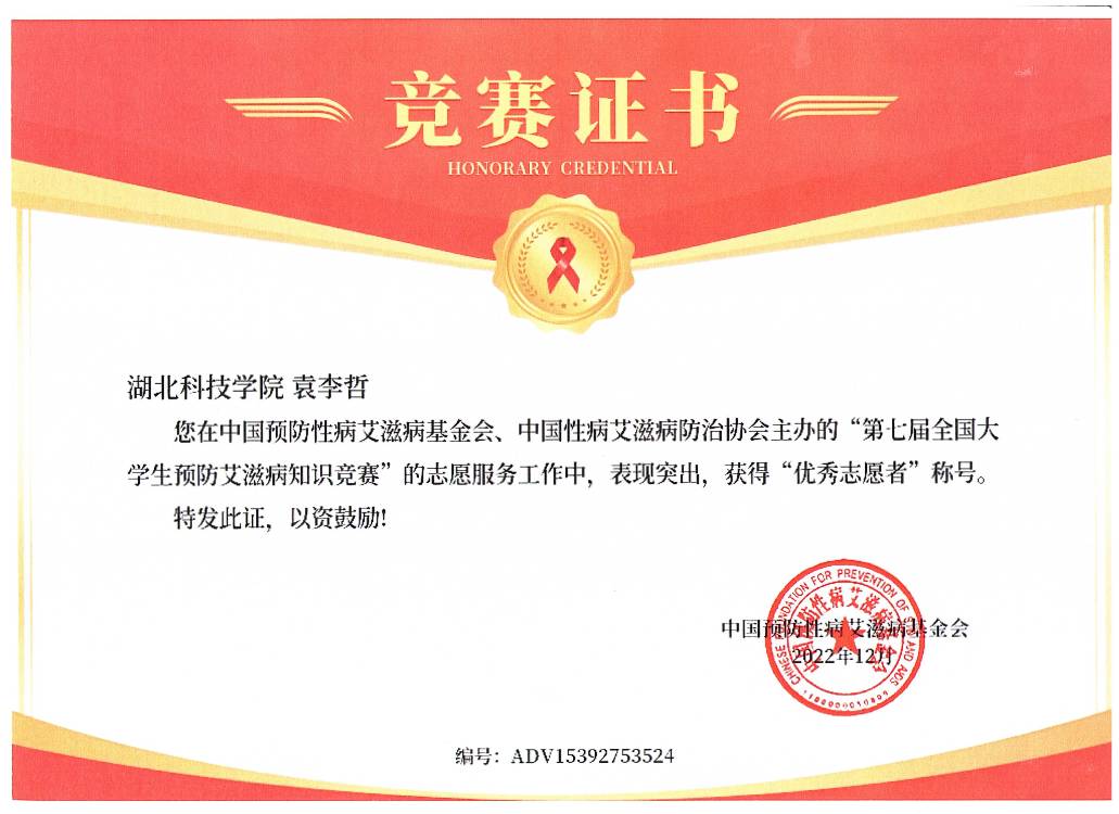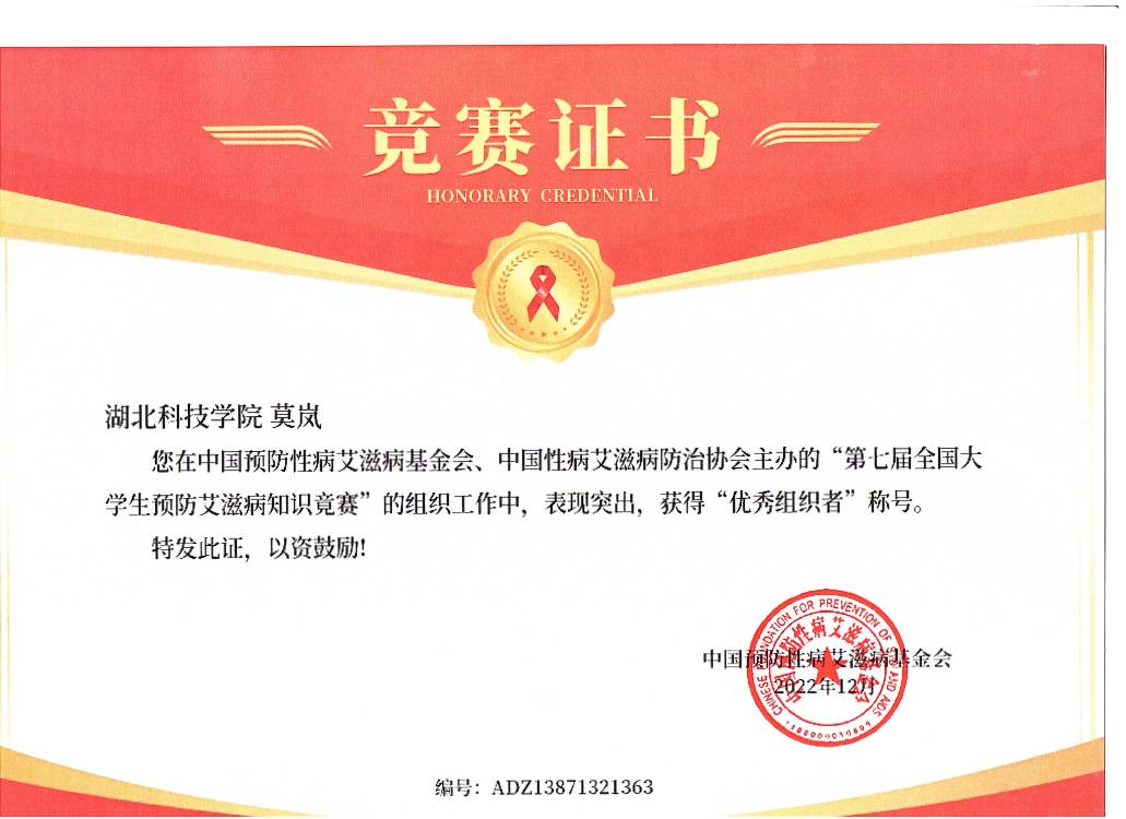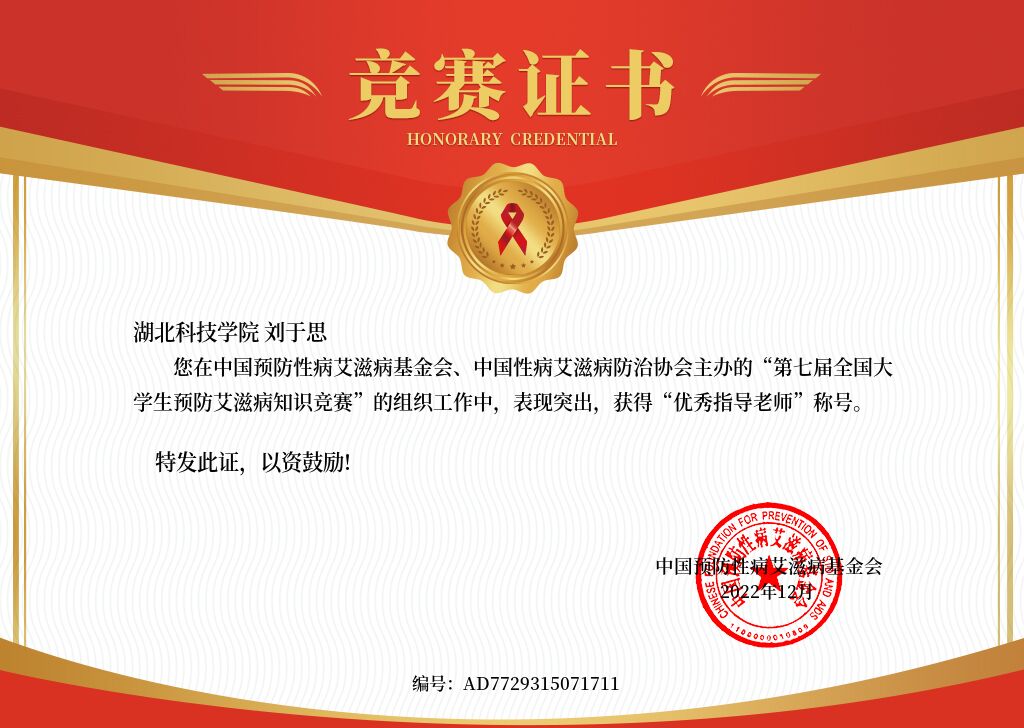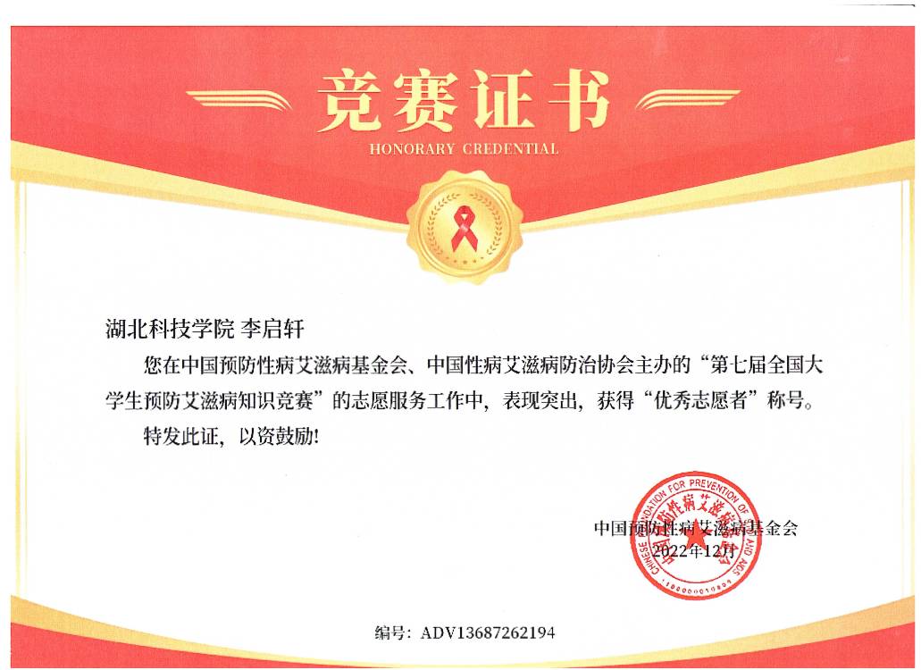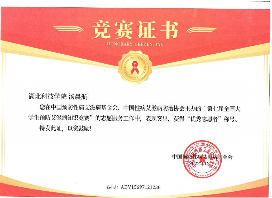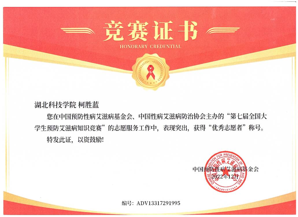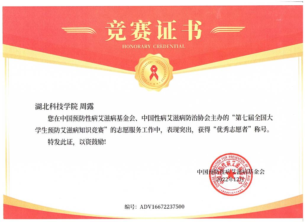 (第七届防艾知识竞赛中获奖荣誉证书)
